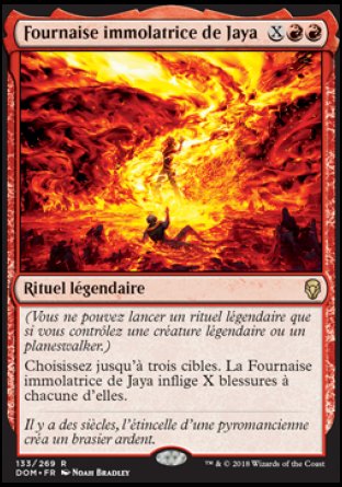 Le saviez-vous ? La carte Jaya's Immolating Inferno est l'histoire de Jaya Ballard, Task Mage embrassant son étincelle de planeswalker grâce à Jodah, Archmage Eternal et son miroir magique, brûlant les mauvais esprits de Mairsil, the Pretender et Lim-Dûl the Necromancer qui la contrôlaient.
